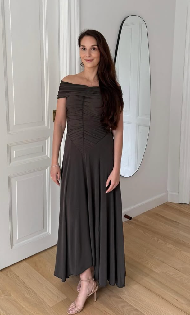 Flatterende off-shoulder pasform med rynkede detaljer